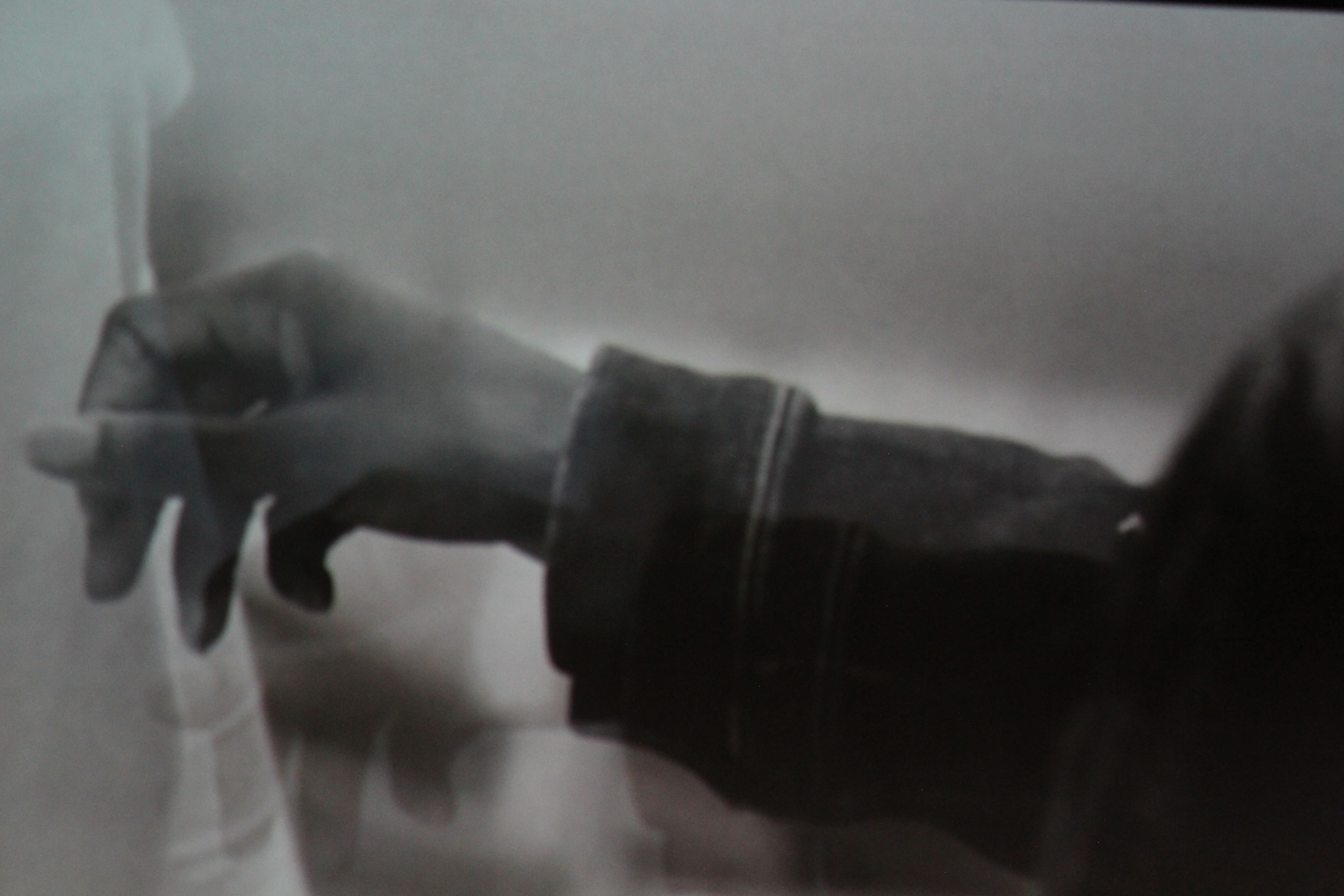 Accompanying the performance are looped microfilms that tell the story of a service worker going through various conditioning in exchange for working their job.